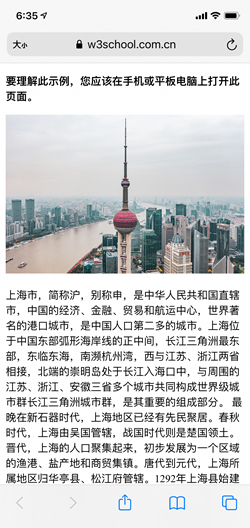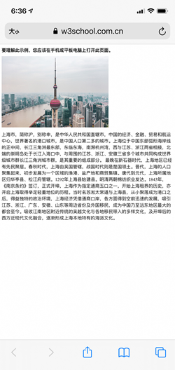 提示:通过 <meta> 标签,有一种方法让网页设计师控制视口(即用户在网页中可见的区域)(请参见下面的"设置视口"实例)。